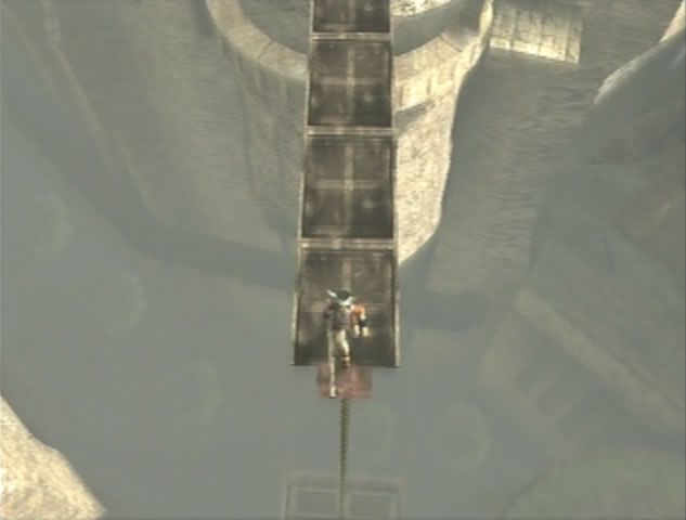 Just walk over the edge and Ico will climb down onto the chain.