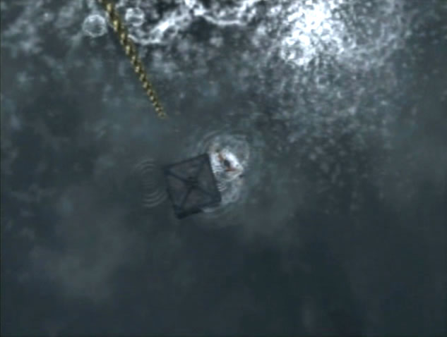 About here will do for the crate. Climb onto it, and with a bit of trial and error you'll be able to grab the chain.