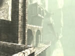 Now you must go and get Yorda. In one corner of the pit is an elevator. Pull the lever to get up to a walkway above you. Go to the far end of the walkway and pull the lever there to open the gate Yorda is behind. Take her to the elevator and return to the pit. Once the elevator is at the bottom again, note the large steps over to the right. If you go up these and across the bridge you will find a Stone Seat, if you wish to save your game. Either way, use the crate you pushed down here a minute ago to climb out into the grassy area, and then help Yorda to do the same. Then climb up the ladder you climbed down earlier, making sure Yorda follows you. At the top, follow the walkway to the far end, past the chain you used to get here originally, and climb another ladder there. When Yorda catches up with you, take her through the door at the top of the ladder.
